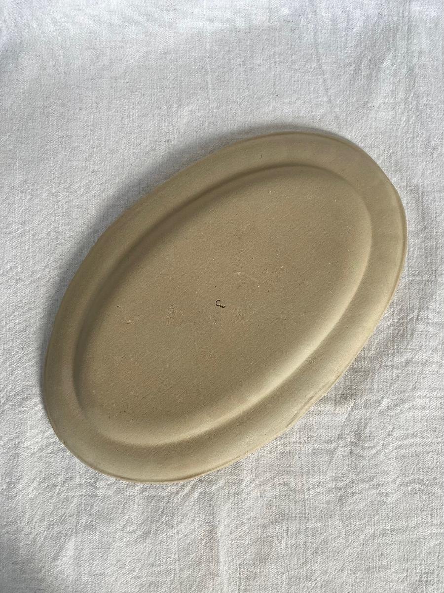 Toutes les coupelles ou plats sont en grès sont réalisées avec la technique de la plaque. Ils sont cuits à haute température dans mon four de potier, deux fois : une première à 960 degrés et une deuxième fois, après émaillage, à 1260 degrés. Les pièces sont toutes imperméables.