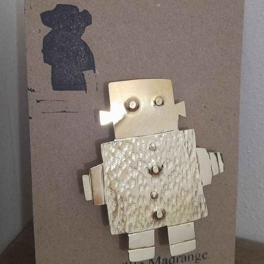 gentil petit robot en broche . série Golems . Collection Archeostories